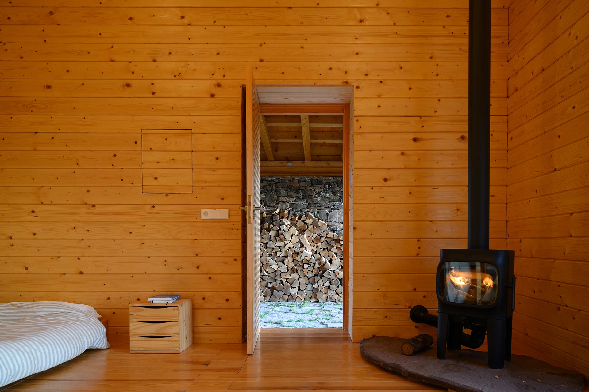 Casa Juno cabin in morning filtered light